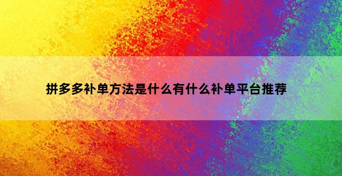 拼多多补单方法是什么有什么补单平台推荐?