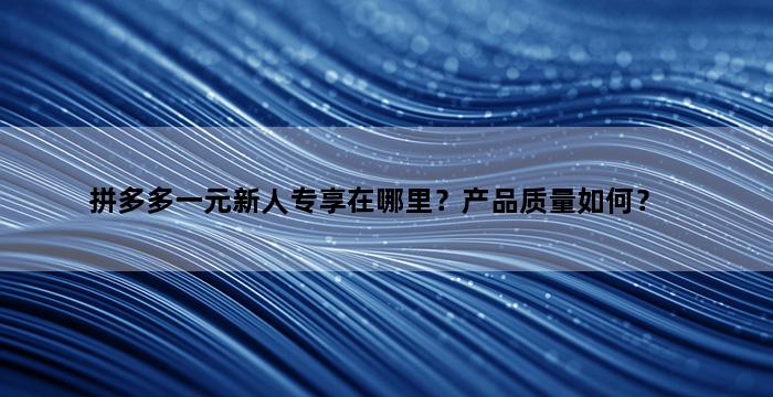拼多多一元新人专享在哪里?产品质量如何?